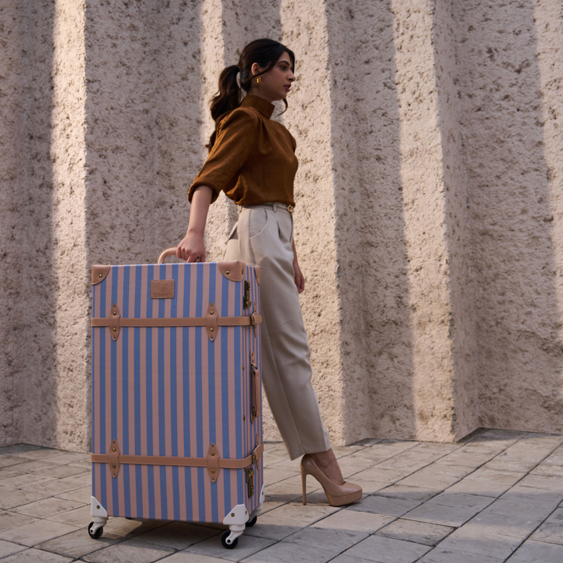 The shell is wrapped in luxury vegan leather, offering a cruelty-free, spill-resistant finish with a refined hand feel. Built to retain its silhouette through real travel conditions, this piece is designed to protect not only what you carry, but the craftsmanship itself.